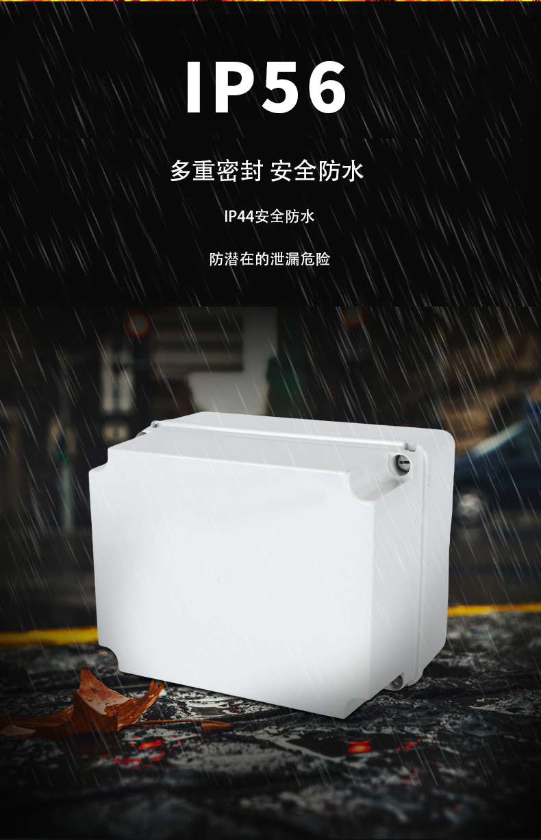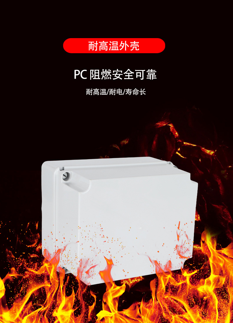 多重密封/安全防水 防水IP等級 (IP44)可供選材料(常ABS)ABS阻燃、PC,合金材PC阻燃安全可靠/耐高溫/耐電/壽命長每一個(gè)部分都是精心挑選的,只是為了打造一個(gè)好的產(chǎn)品