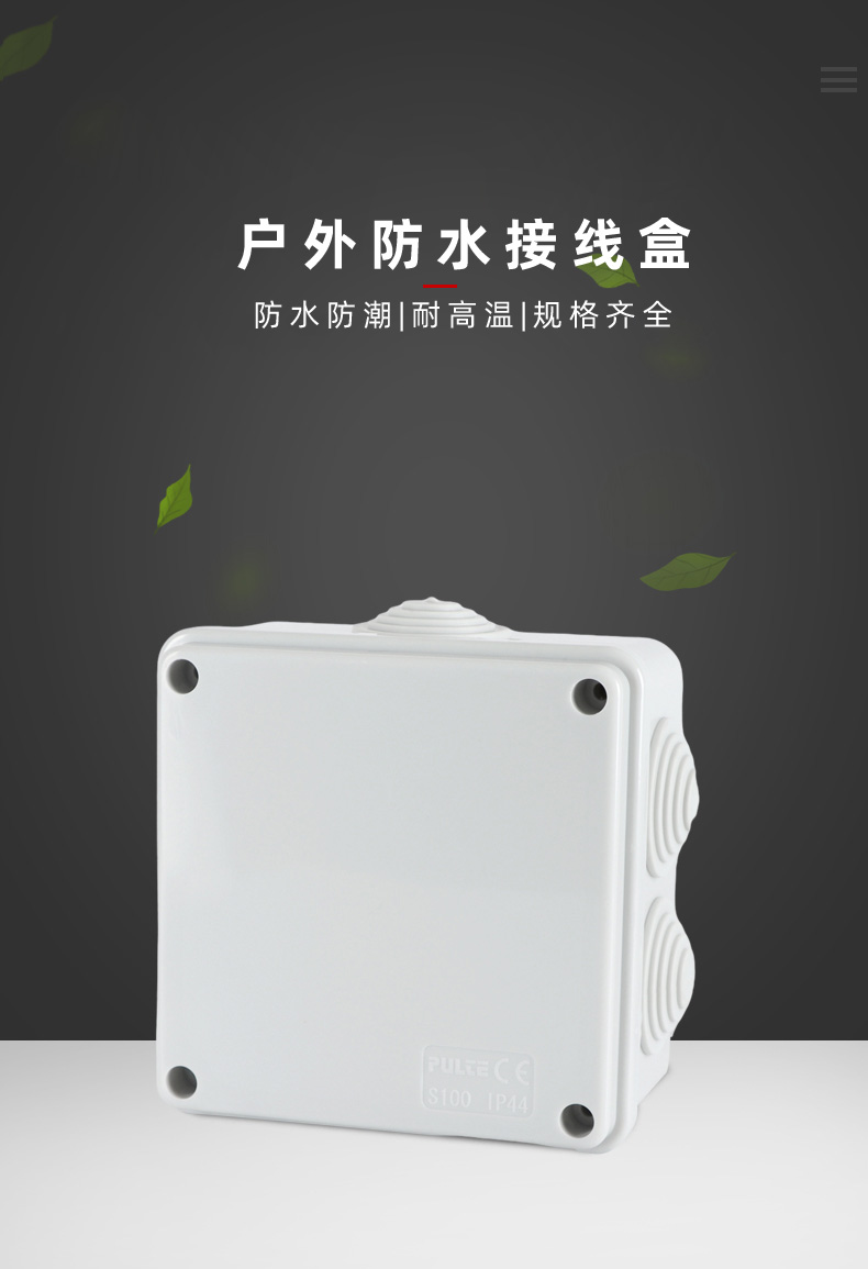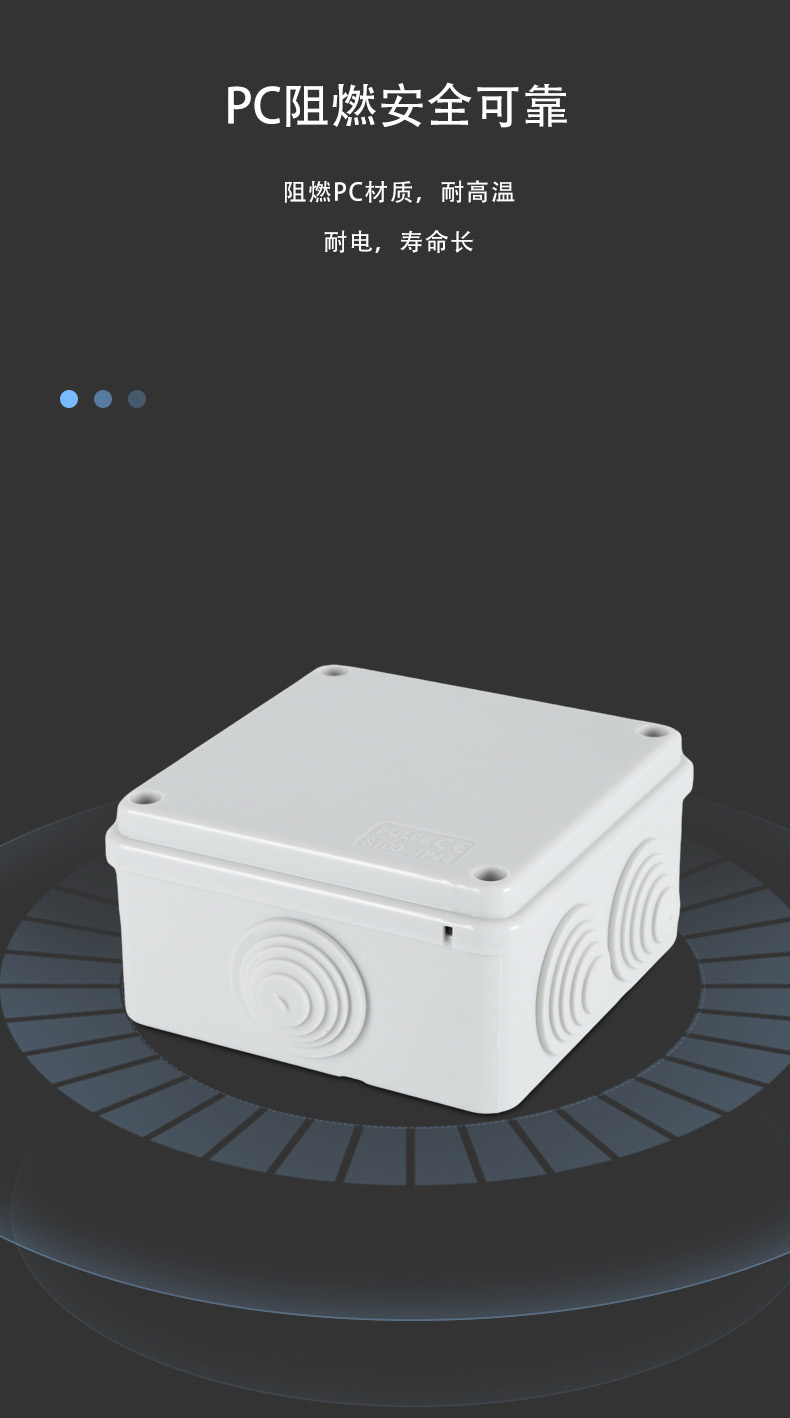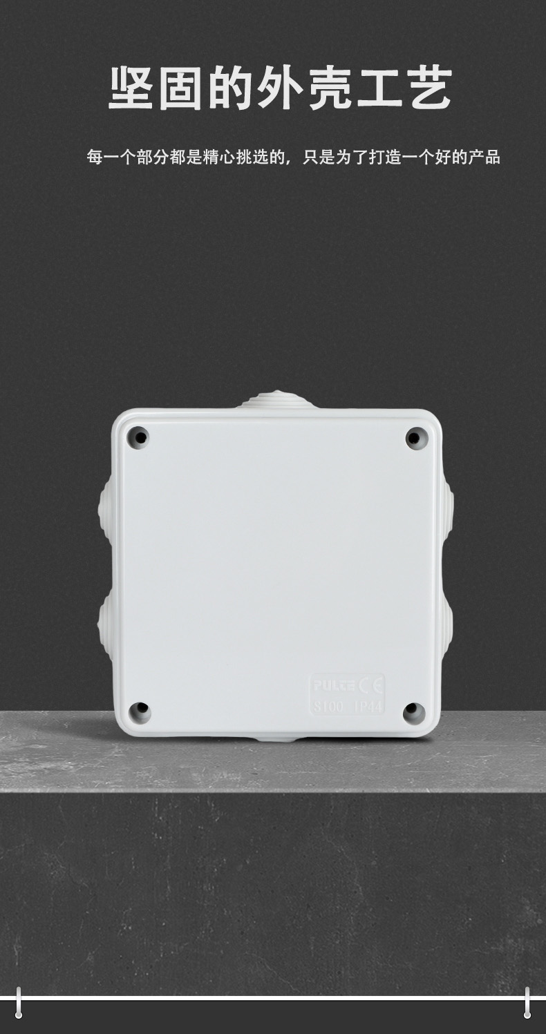 尺寸:100×100×50(mm)多重密封/安全防水 防水IP等級 (IP44)可供選材料(常ABS)ABS阻燃、PC,合金材PC阻燃安全可靠/耐高溫/耐電/壽命長每一個部分都是精心挑選的,只是為了打造一個好的產(chǎn)品