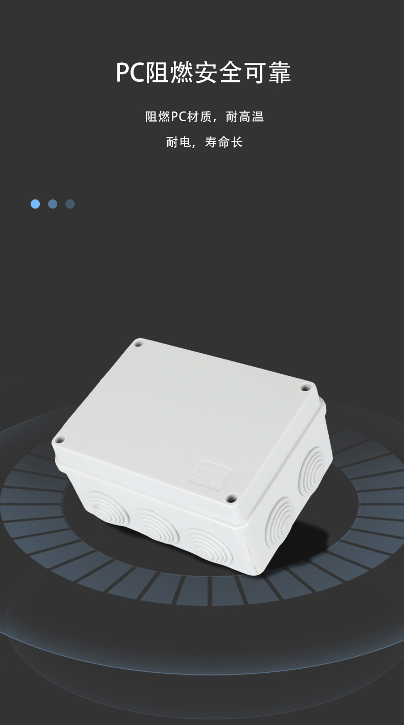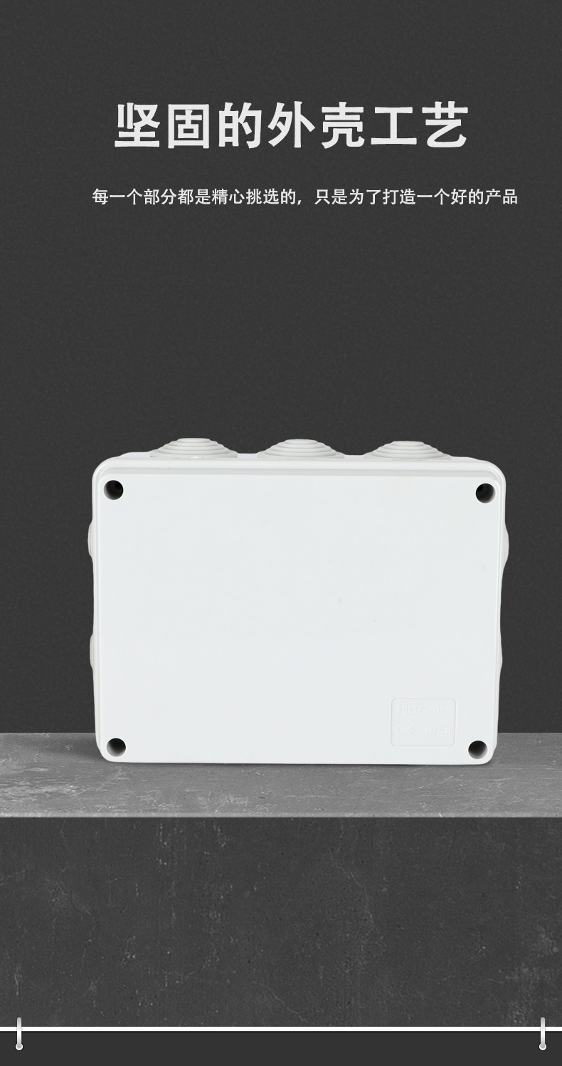 尺寸:150×110×70(mm)多重密封/安全防水 防水IP等級 (IP44)可供選材料(常ABS)ABS阻燃、PC,合金材PC阻燃安全可靠/耐高溫/耐電/壽命長每一個部分都是精心挑選的,只是為了打造一個好的產品