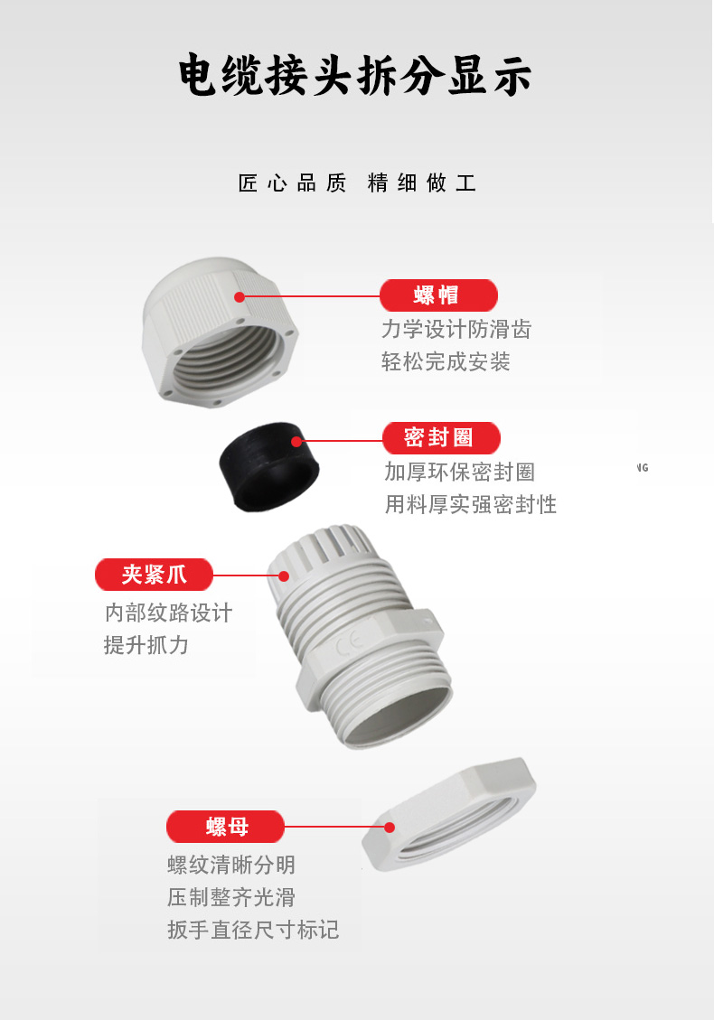 高密封性防水接頭保護(hù)電纜安全,長期使用不容易滲水