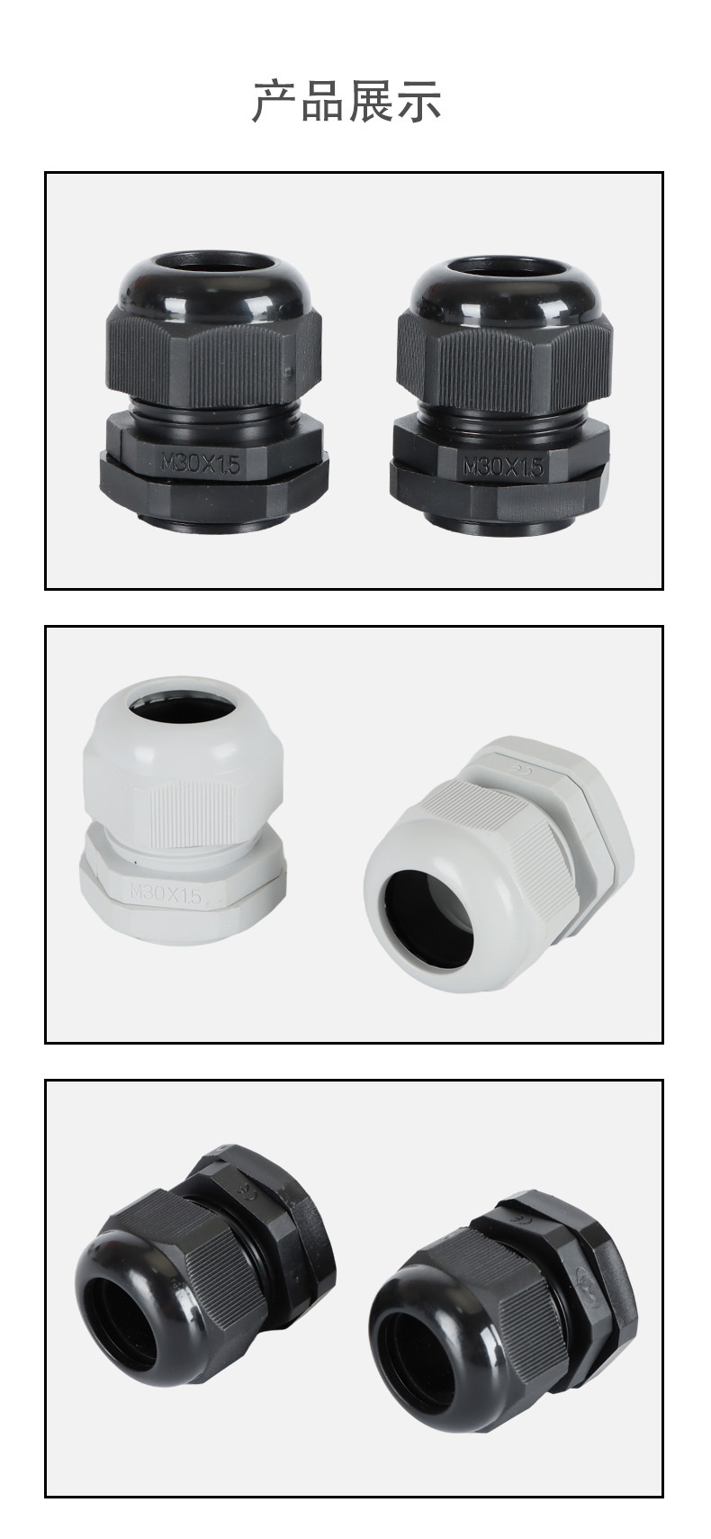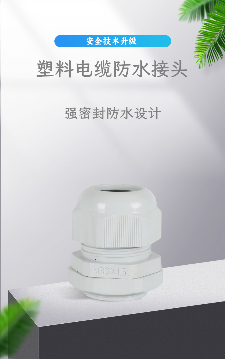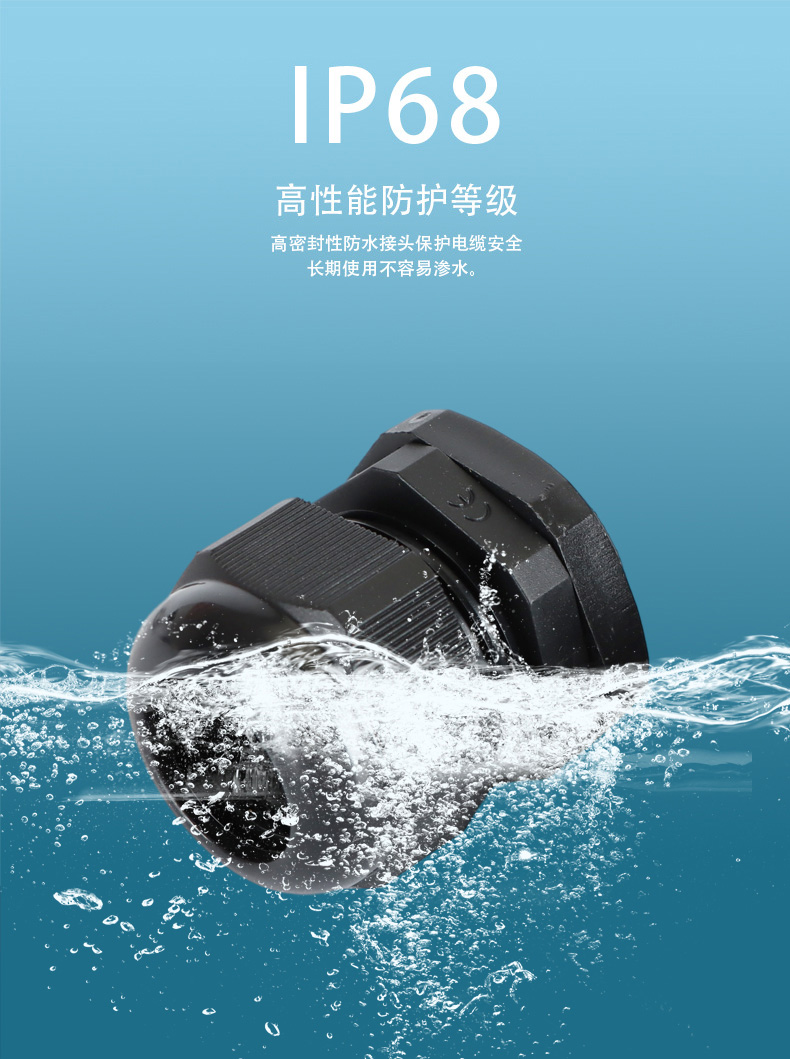 尼龍材質(zhì)適用惡劣環(huán)境紅、灰、黑、深灰、白、藍(lán) 六種顏色常規(guī):黑、灰兩種顏色,其它顏色需要定做在嚴(yán)寒與高溫等惡劣環(huán)境下,保持長(zhǎng)期不開(kāi)裂不漏水高密封性防水接頭保護(hù)電纜安全,長(zhǎng)期使用不容易滲水