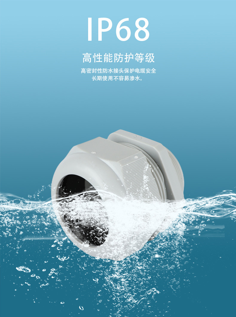 尼龍材質(zhì)適用惡劣環(huán)境紅、灰、黑、深灰、白、藍(lán) 六種顏色常規(guī):黑、灰兩種顏色,其它顏色需要定做在嚴(yán)寒與高溫等惡劣環(huán)境下,保持長(zhǎng)期不開裂不漏水高密封性防水接頭保護(hù)電纜安全,長(zhǎng)期使用不容易滲水